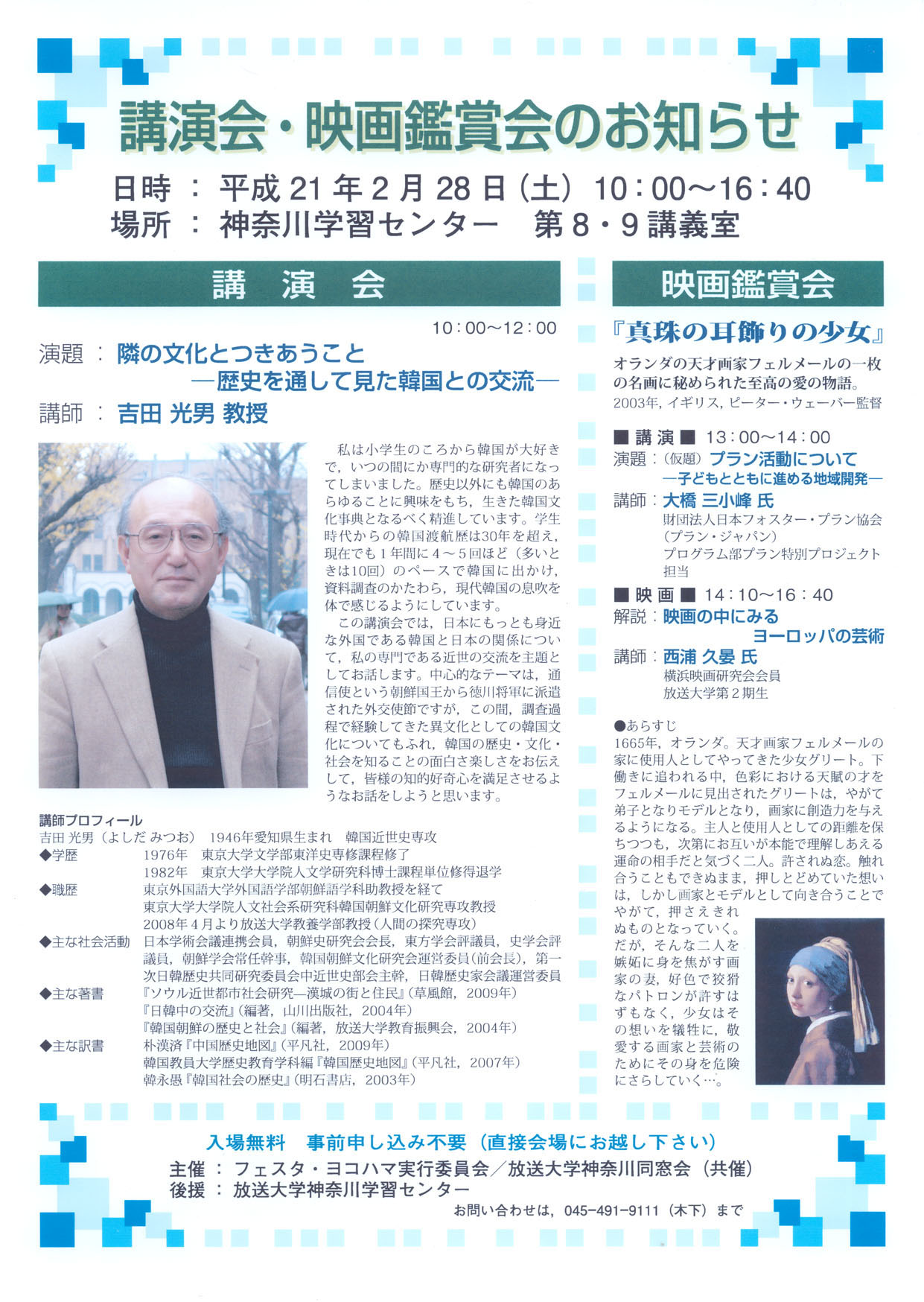 講演会開演:午前10時00分(〜正午)第8講義室にて