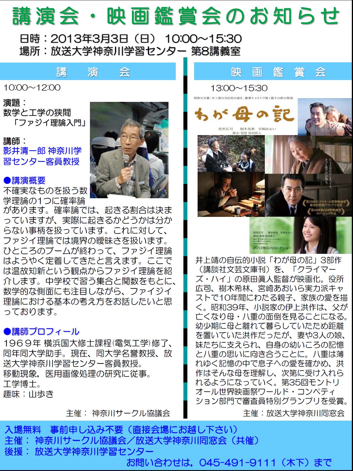 放送大学神奈川学習サークル協議会主催 公 開 講 演 会