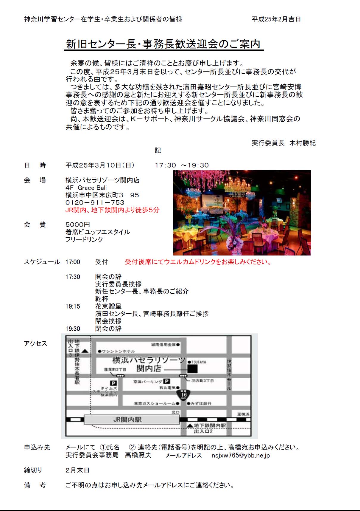 所長・事務長歓送迎会のお申し込みはこちらから(募集は締め切りました。2013.3.6)